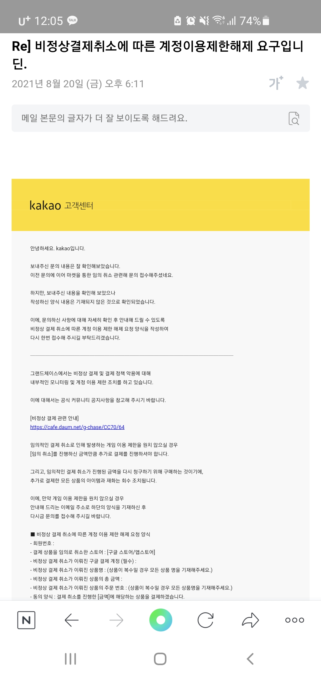 작성자지승 작성시간 21.08.21 저도 예전에 잘못된 환불요청 때문에 금요일날 정지를먹어 주말을 날리고 월요일날 문의답변을 통해 풀리긴했는데