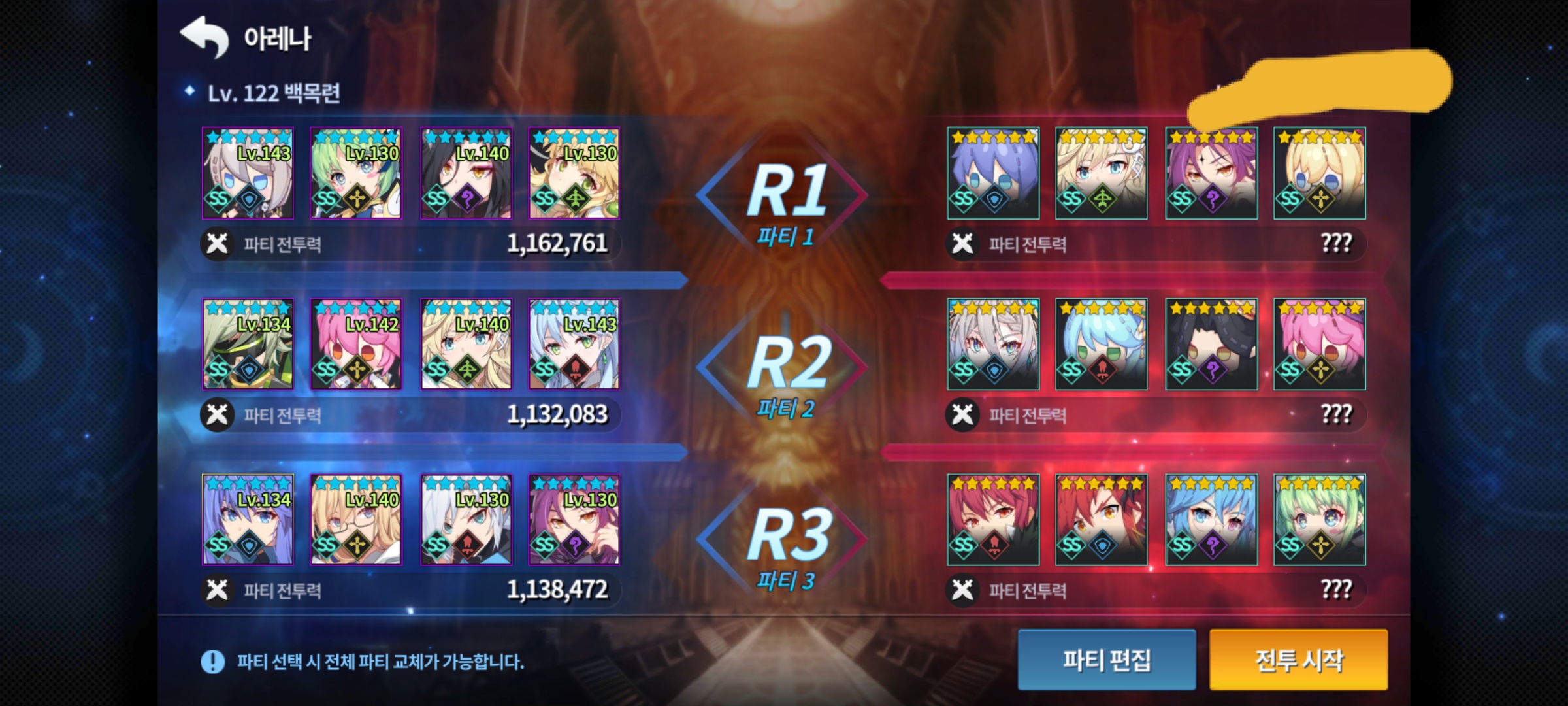 차라리 화력약한 파티쪽에 화력을 집중해서 2별만은 사수하는게 이득입니다.