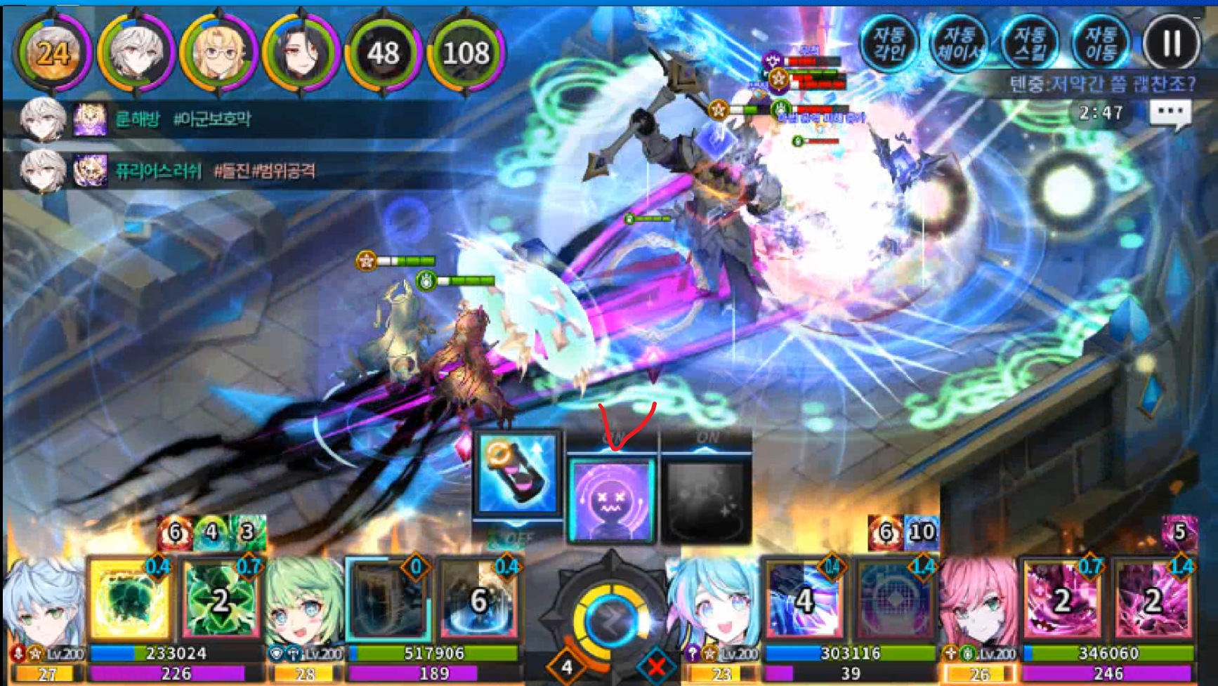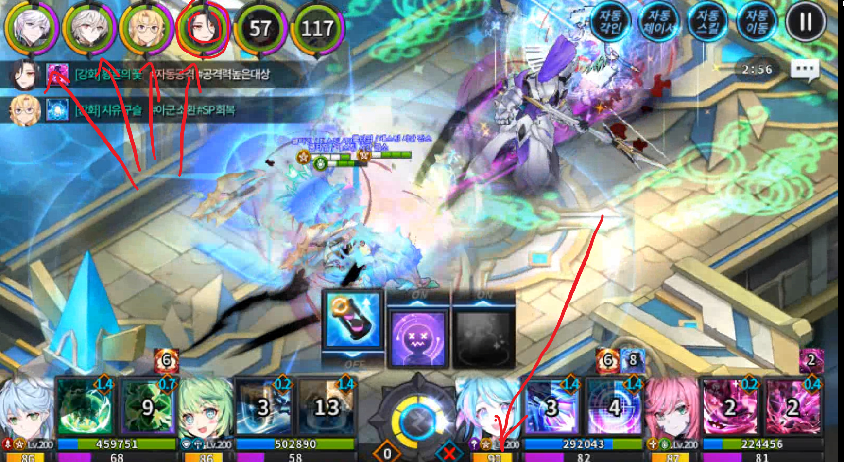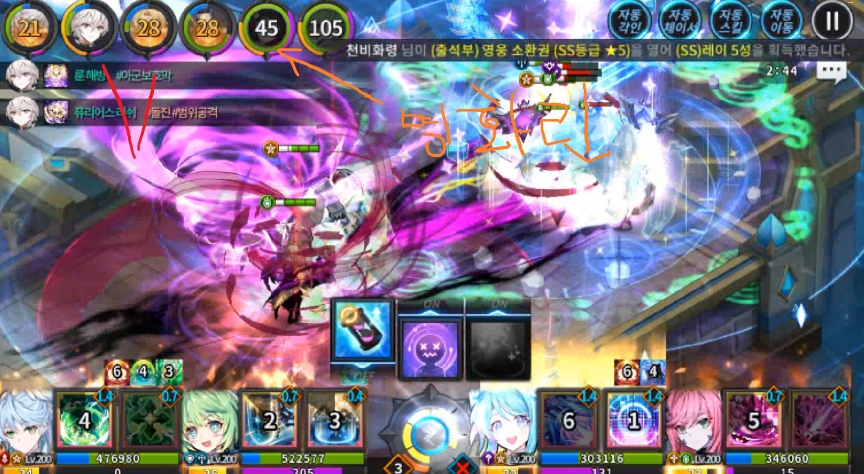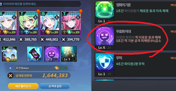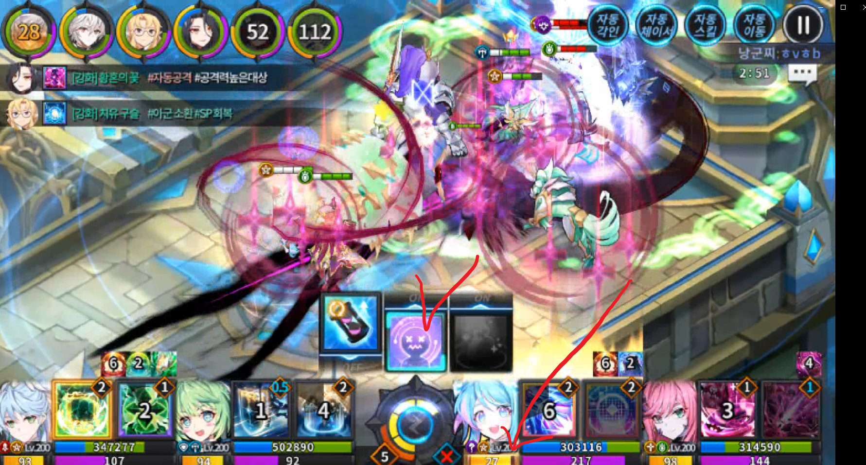 이때 파티효과 스킬 타이밍이 중요합니다