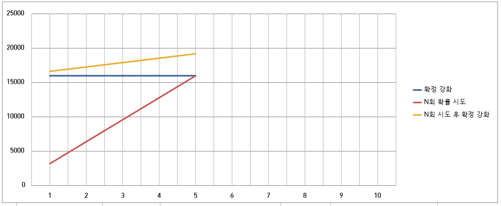 3. 빨간선이 파란선을 넘는 순간부터는 확정강화를 하는게 이득