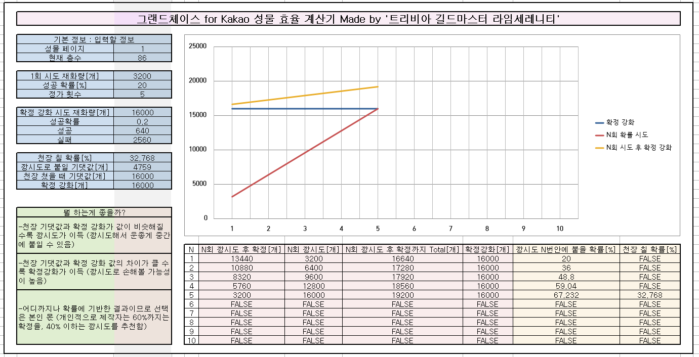 직접 1회 시도 재화량, 성공확률, 정가횟수를 넣어도 됩니다