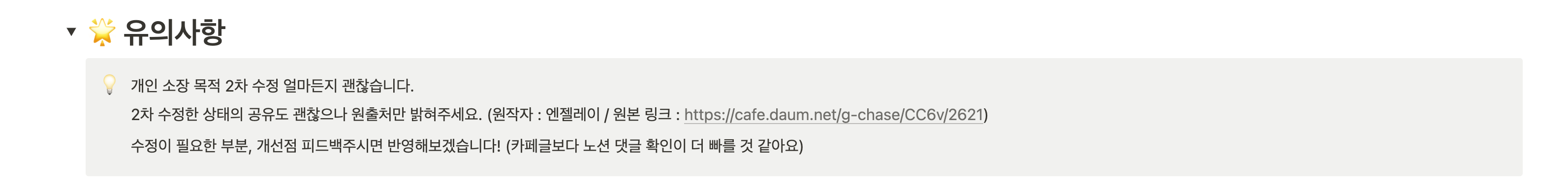 제가 사용하려고 만든 양식 더 보완해서 공유하는 게 끝인데다가, 편한대로 수정해서 사용하셨으면 하는 바람으로 2차 수정 및 배포에 대해서 아무런 제약을 두지 않았습니다.
