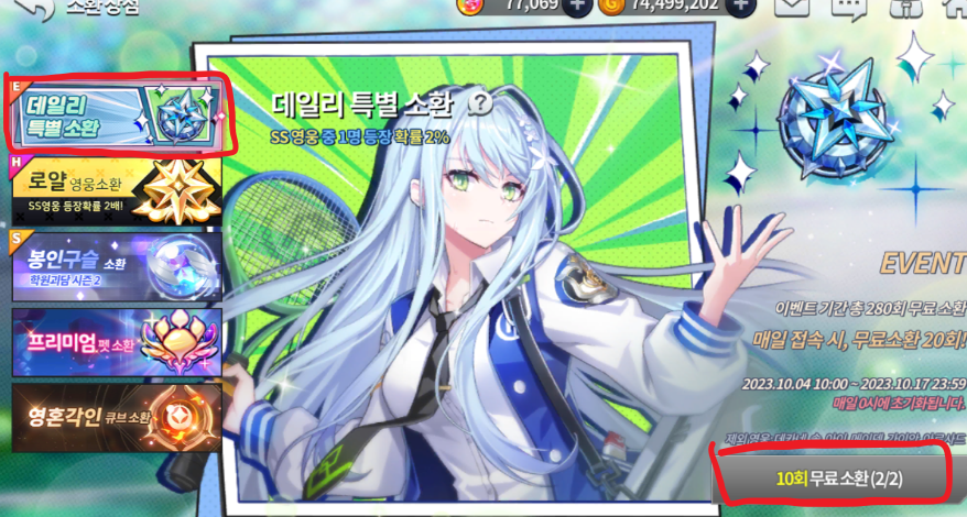 무료소환 2번하시고 ss등급 뜨길 바래봅시다