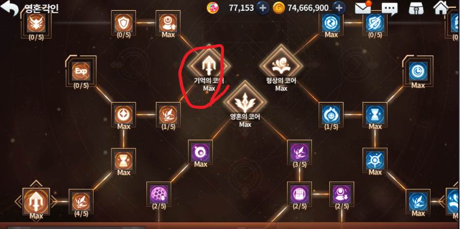 기억의 코어 5렙만 달성하면 영큡, 정수, 체이서, 각큐를 일정량 줍니다