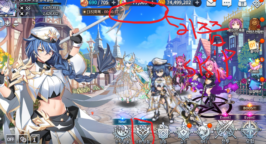 이때까지 퀘스트랑 미션, 용탑등을 미셨다면 소환권이 제법 모였을 겁니다