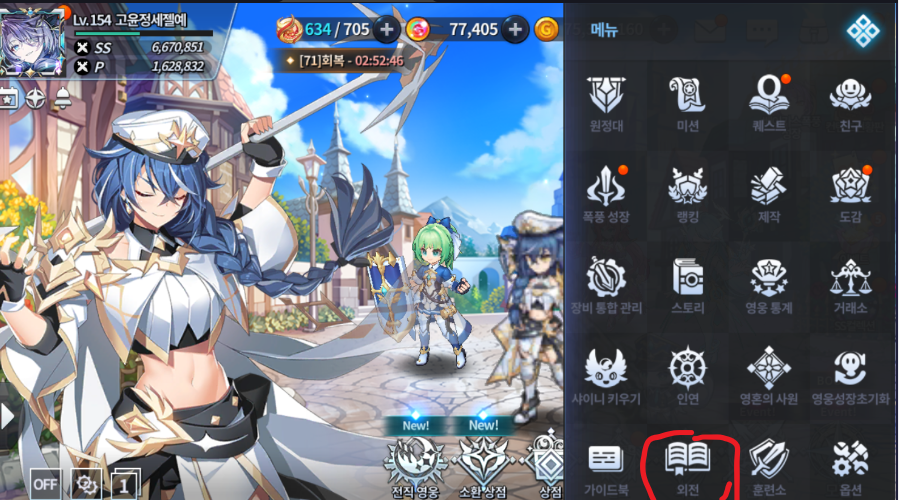 메뉴에서 외전에 들가시면 저렇게 화면 뜨는데