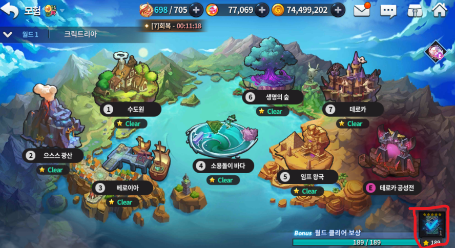 이렇게 하시고 플레이 시간에 따라 다르겠지만 8~9월드 진입하시면 슬슬 뎌디게 되는데요