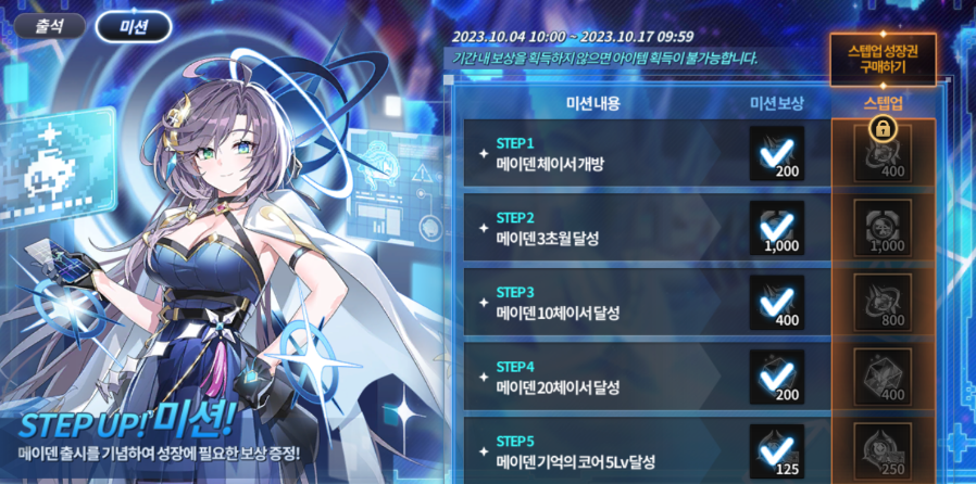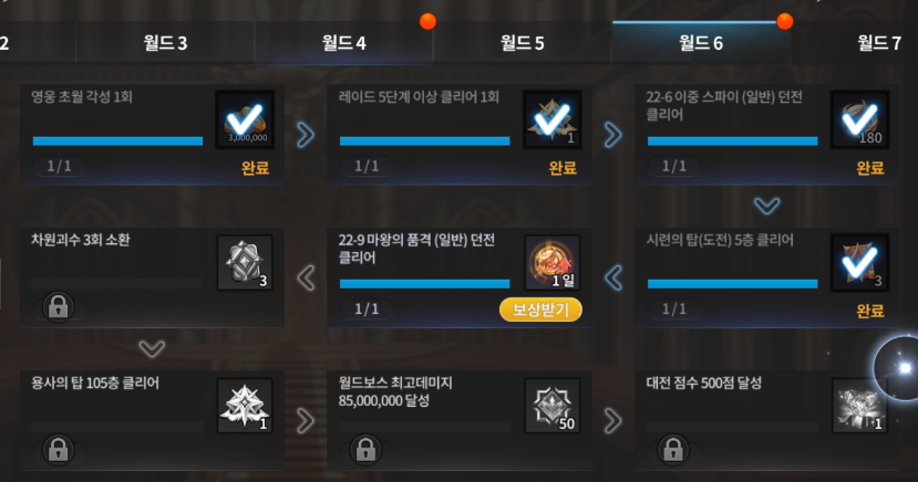 이렇게 각 월드마다 미션과 보상이 다 다릅니다