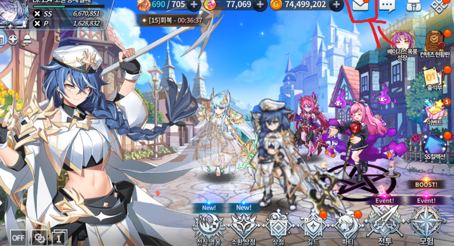 그리고 모험에 들어가셔서 무료소환에서 ss등급이 떴다면 메이덴과 넣어주시고