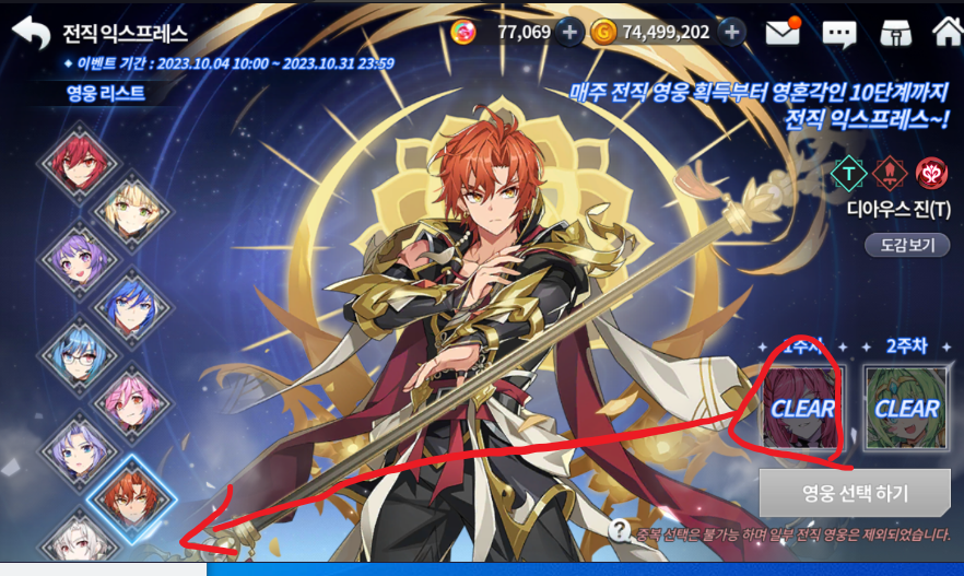 우측처럼 영웅들이 나열된건 신캐를 제외한 선택권입니다