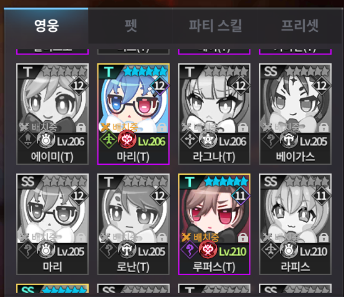 취지는 12단에서 필요한 물덱/마덱 업화 영웅들 모두 살리기 입니다.