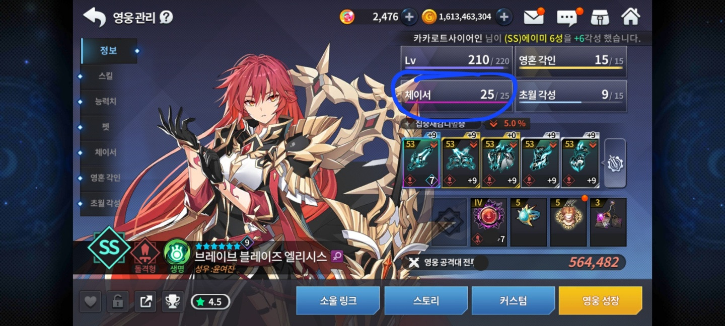 영혼각인은 20체이서를 찍은 후 개방할 수 있는 기믹인데 영혼 각인 상태에선 기술이 강화됩니다.