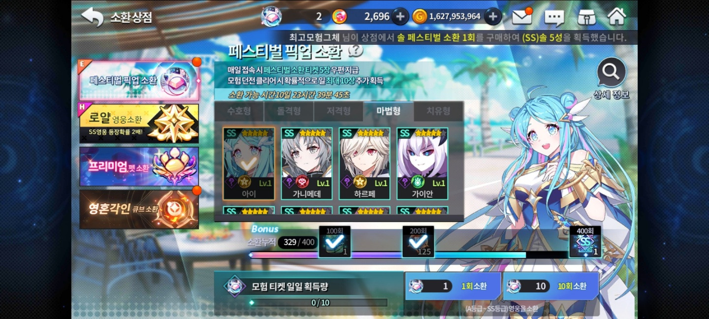 하지만 이번에 하는 페스티벌 픽업 소환 이벤트에서는 무료로 뽑으실 수 있습니다.(2%)
