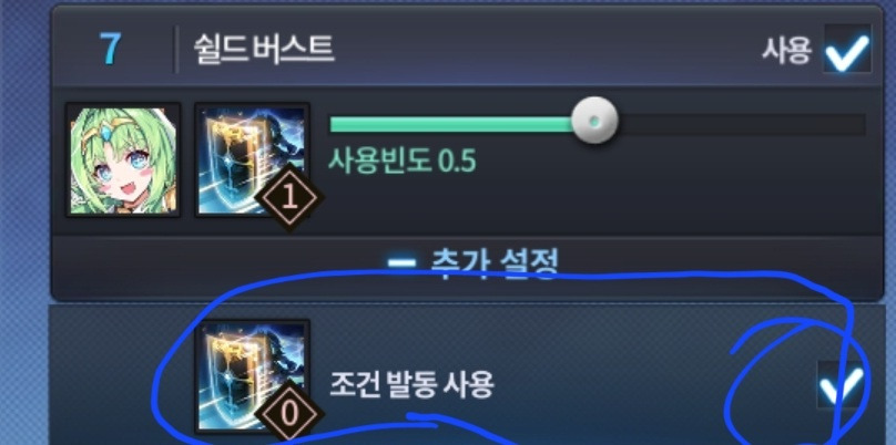 작성자In.water 작성시간 24.08.06 혹시 스킬 조건 사용은 어디 들어가서 설정 가능한가요?