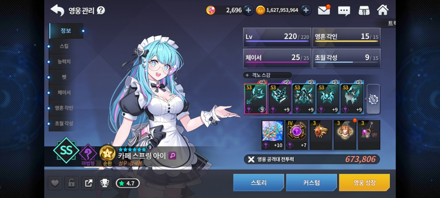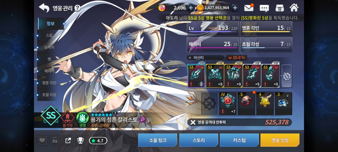 모험이든 출석이든 주는 ss선택권은 쓰이는 애들 영혼각인 시키는 데 써주세요. 7초월 각성 이상은 뉴비에게 추천하지 않습니다.