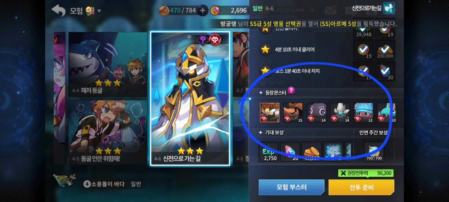 이 친구는 아직 신캐라인에 속하는 지라 모험에서 주는 ss 선택권으로는 획득하실 수 없습니다.(현질 선택권으론 가능)