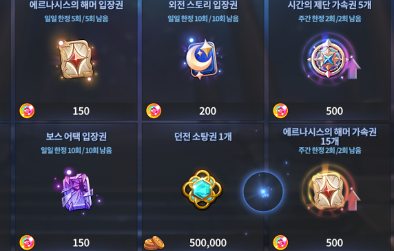 해머 입장권 3개, 가속권 1개에 500백금화인데