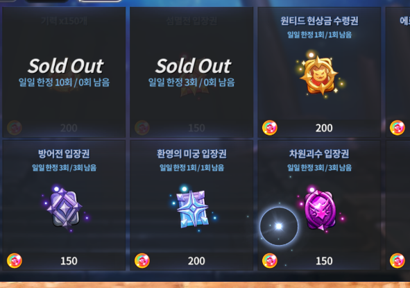 방어전과 섬멸전의 입장권 젬 가격은 각각 150젬이다