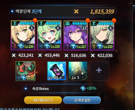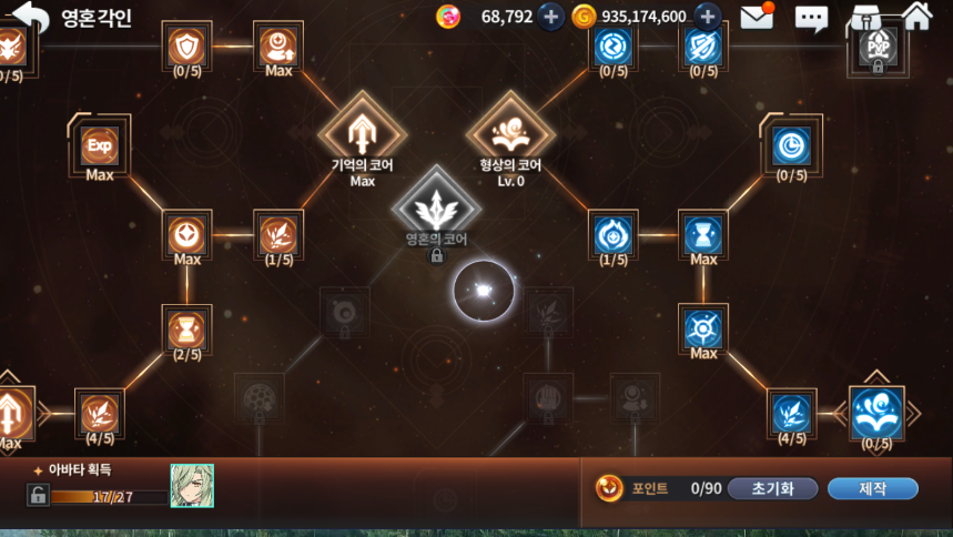 현재는 티진 15각, 티넬리아 10각 + 영혼의 코어 오픈상태임