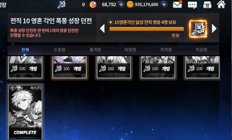 폭풍성장 전직영웅 이거를 했어야했는데 실수로 가능한 애들을 모두 건너뛰고 키워버렸음