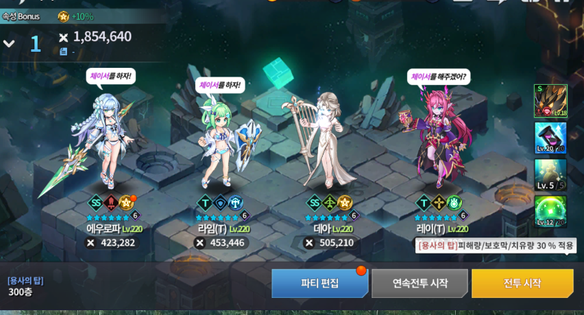3속성 힐러가 있기 때문에 조합맞출때 수월하다