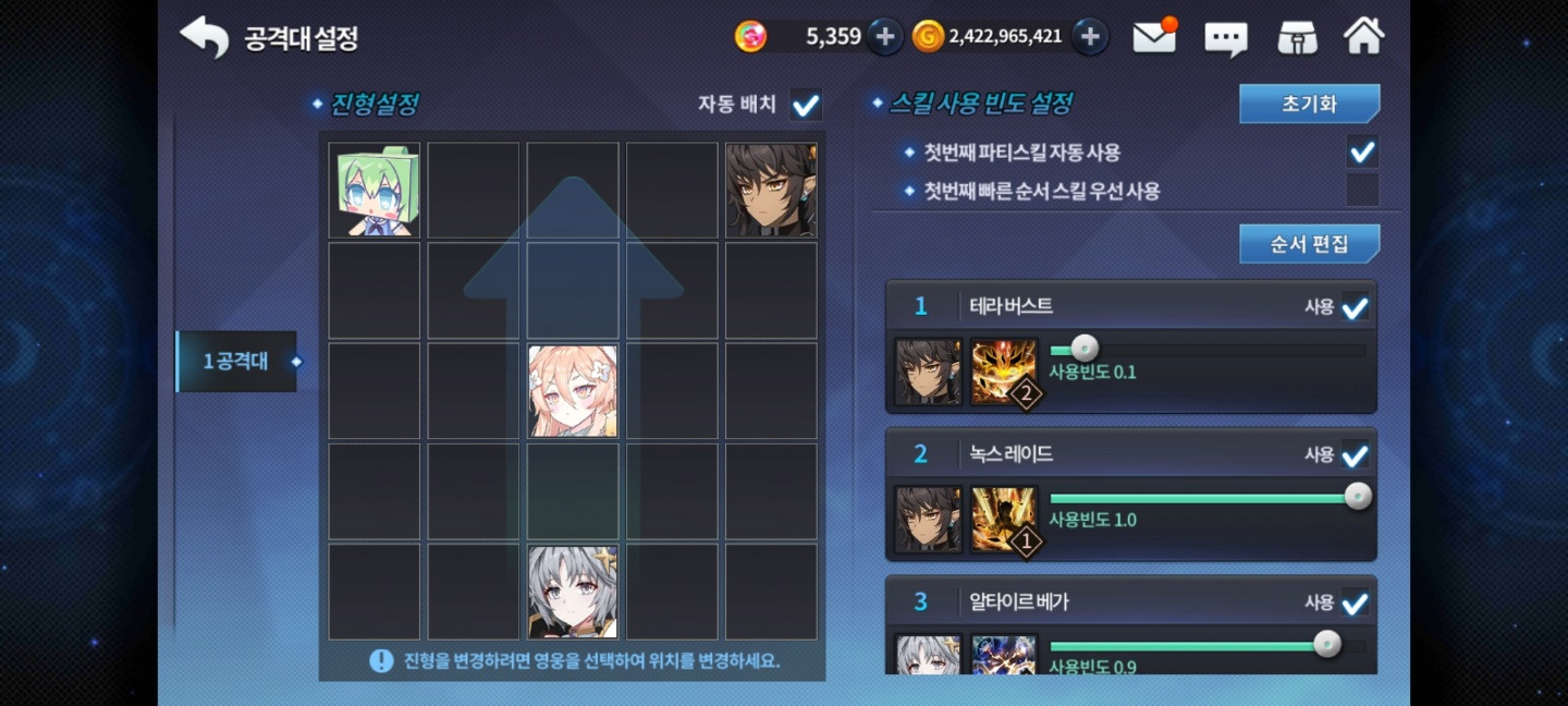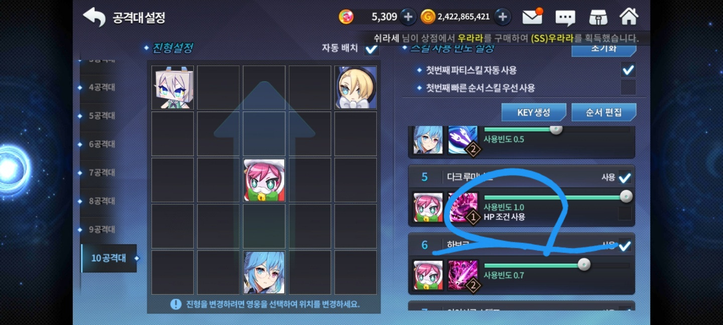 가끔 치유형 속성 영웅들의 스킬을 보시면 hp 조건 사용에 체크돼있을 때가 있어요.(우라라는 없어요)