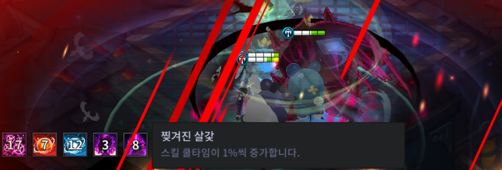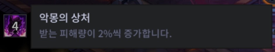 투사체 피격시 악몽의 상처 디버프가 누적됩니다.