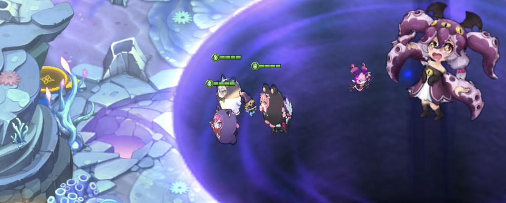 머큐리아가 맵 중앙으로 이동하여 광범위한 블랙홀을 소환하는 패턴입니다.