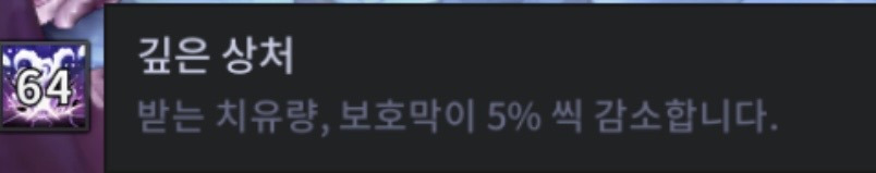 피격시 스턴과 함께 깊은 상처 디버프가 누적됩니다.
