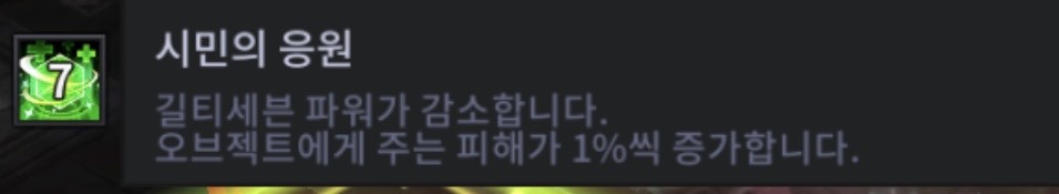 녹색 장판에 피격시 시민의 응원 버프가 누적됩니다.