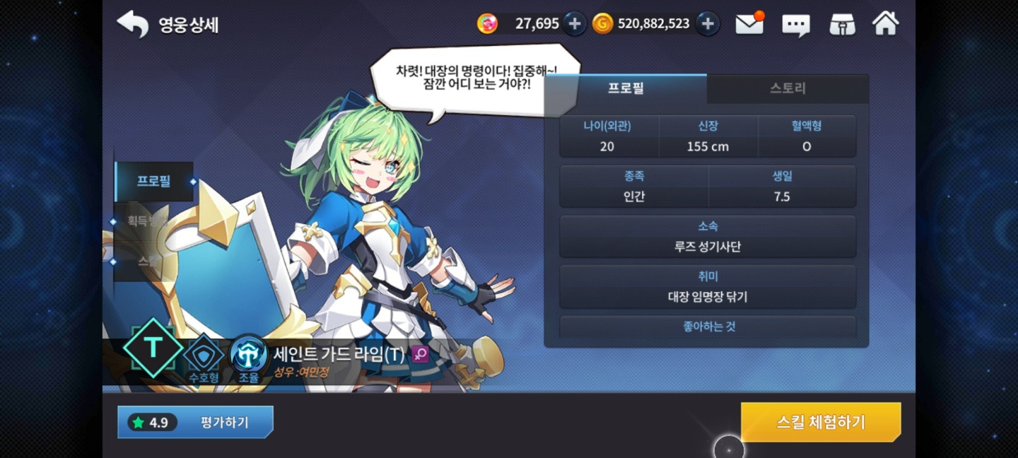 라임(t)는 조율 속성 수호형입니다! 그랜드체이스에는 속성이 있는데요...라임(t)는 속성에 구애받지 않고 탱킹을 잘해줘서 모험 및 다양한 곳에 채용됩니다!