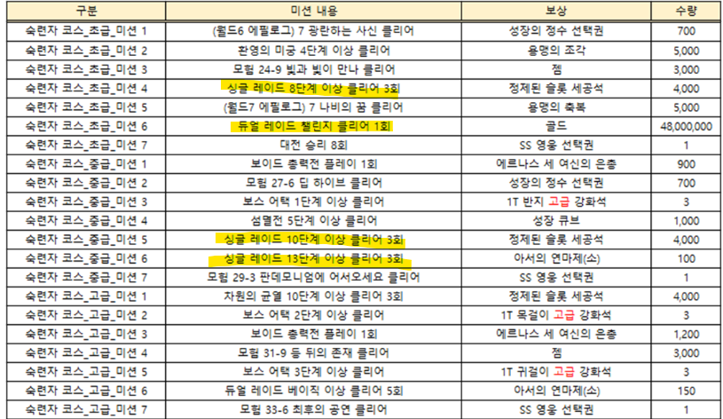 내실을 다지면서, 실버나이트 특훈 퀘스트와 병행하면서 진행하면
