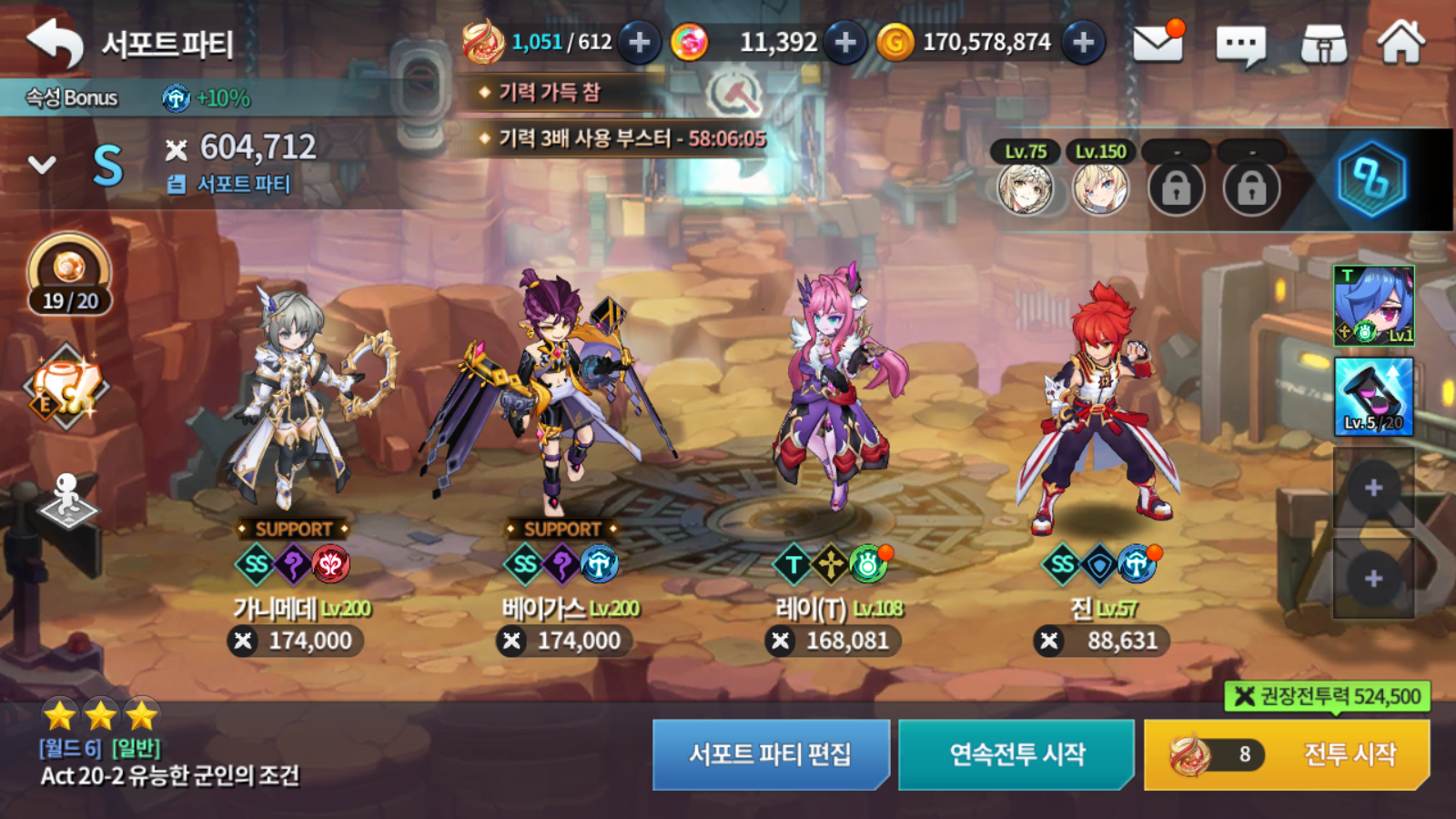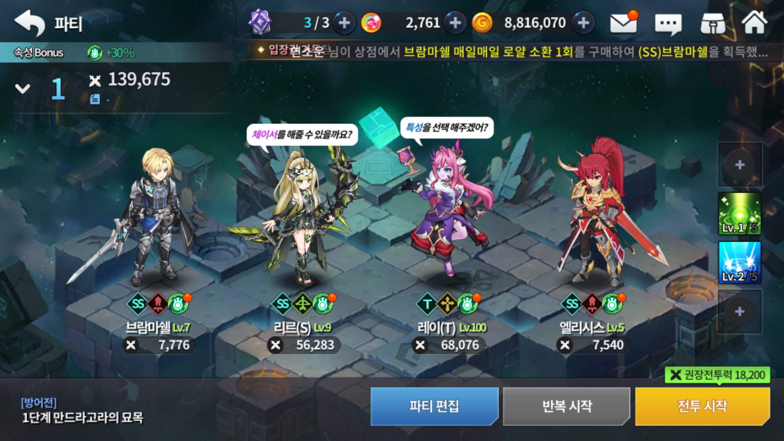 그리고 다른 한명은 "라스"를 선택했습니다. (라스는 월드3 클리어 보상, SS 선택권에서 얻었습니다)