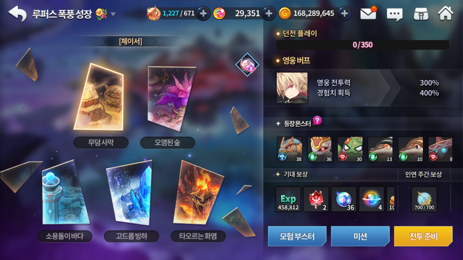 미션을 클리어하기 위해서 일부 캐릭터를 육성해야 합니다. (+ 모험 추천 캐릭터가 절대 아님니다)