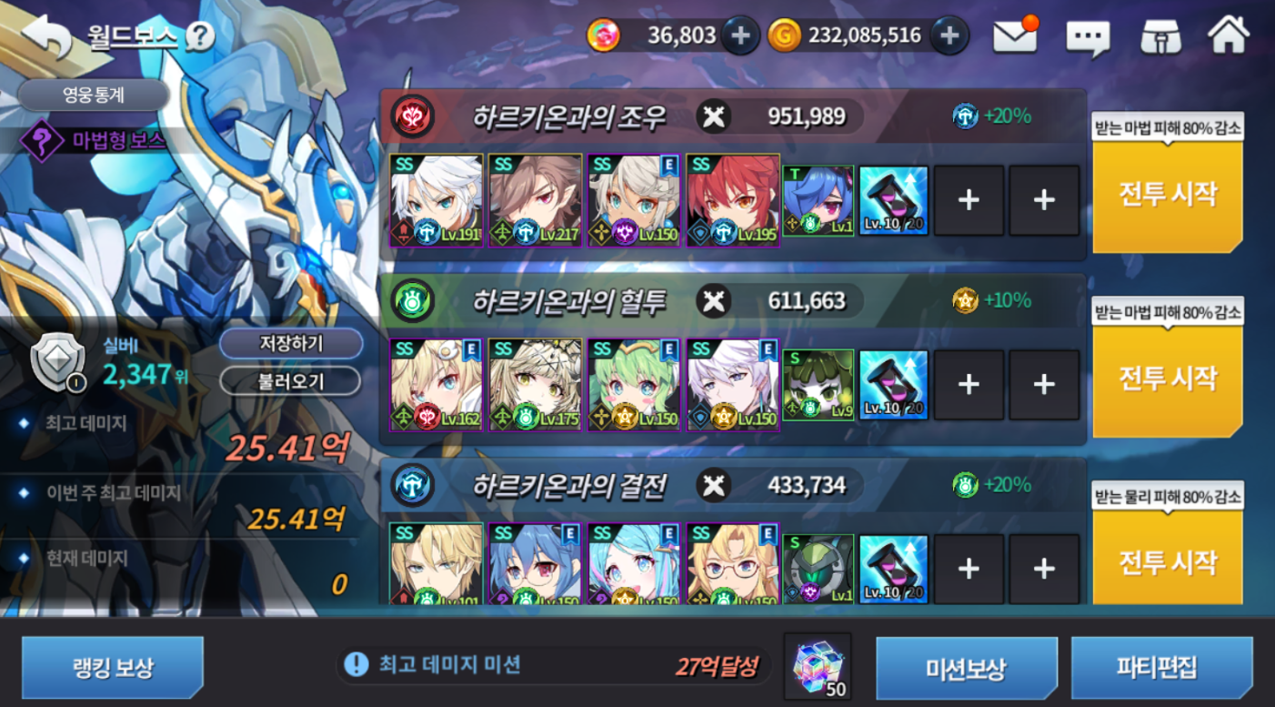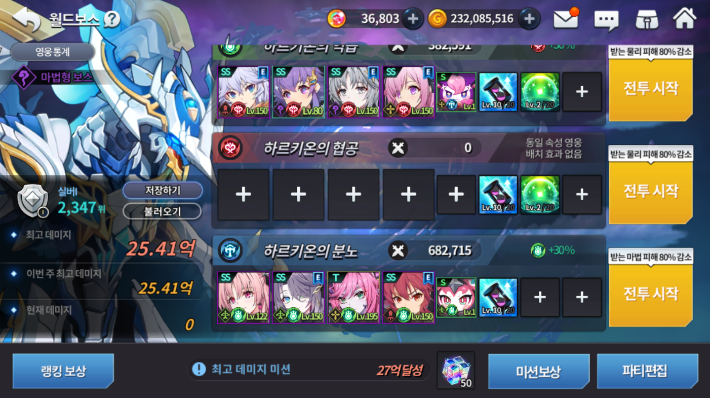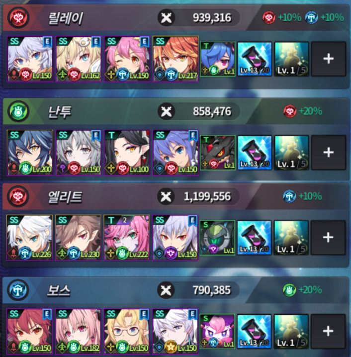 각 속성별 돌격형 딜러 중에서 그나마 제일 쓸만하고 후술할 "월드보스" 페이즈에 맞춰서 들어가는 댁에 필수로 들어가서