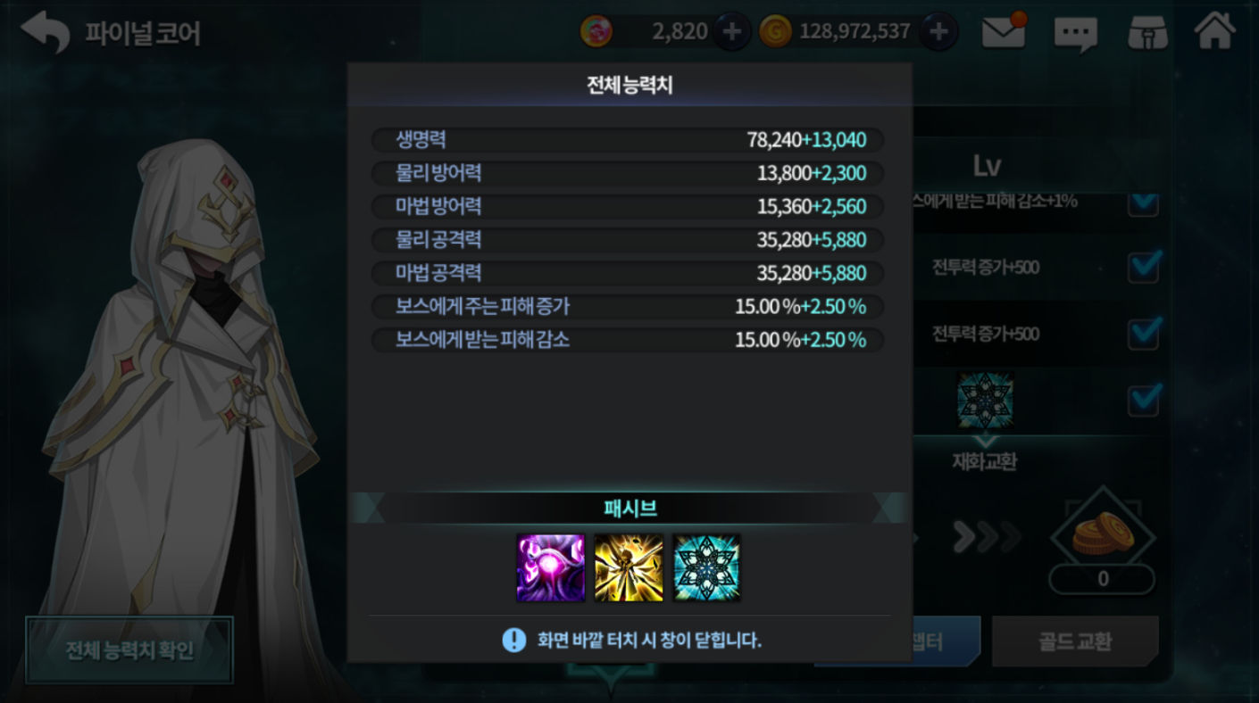 작성자샤나비 작성시간 25.05.04 파이널코어 능력치는 모험만 적용인가요?
