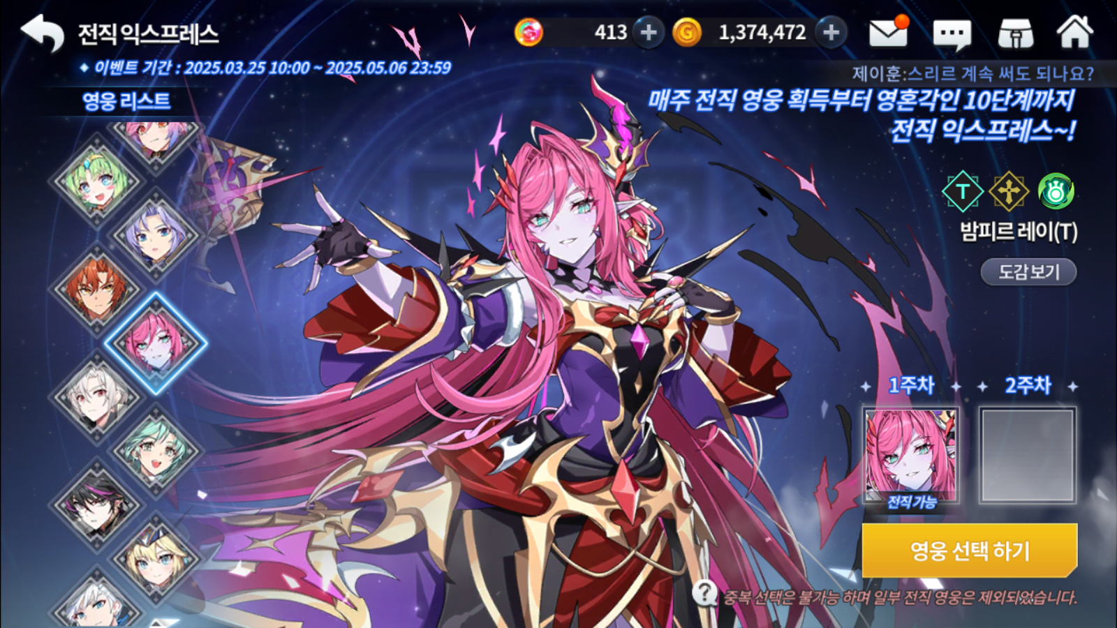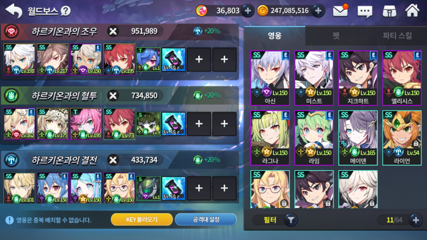 그래서 저는 후술할 월드보스 페이즈 댁 맞추는것을 생각을해서 집결캐릭터를 골랐는데요.