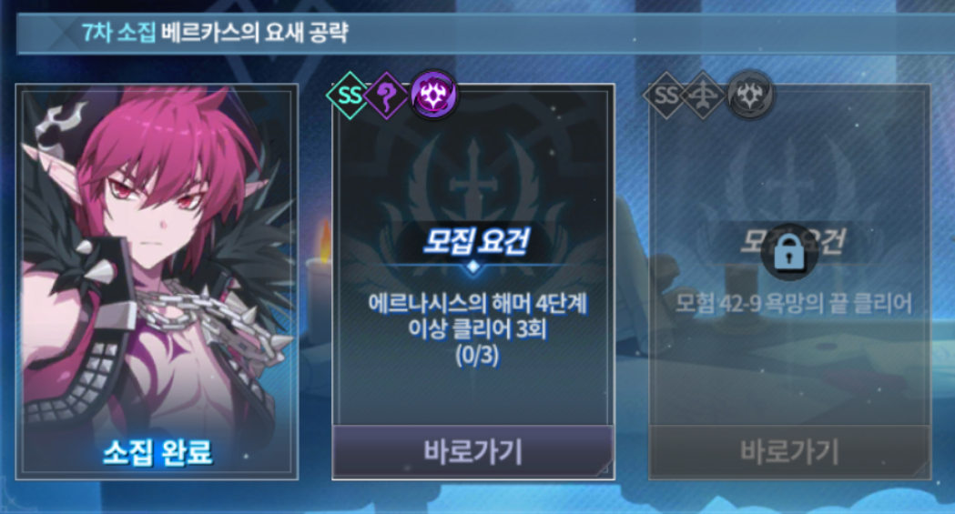 - 7차 소집 | 베르카스의 요새 공략 - 시간의 제단 2단계 이상 보상받기 1회