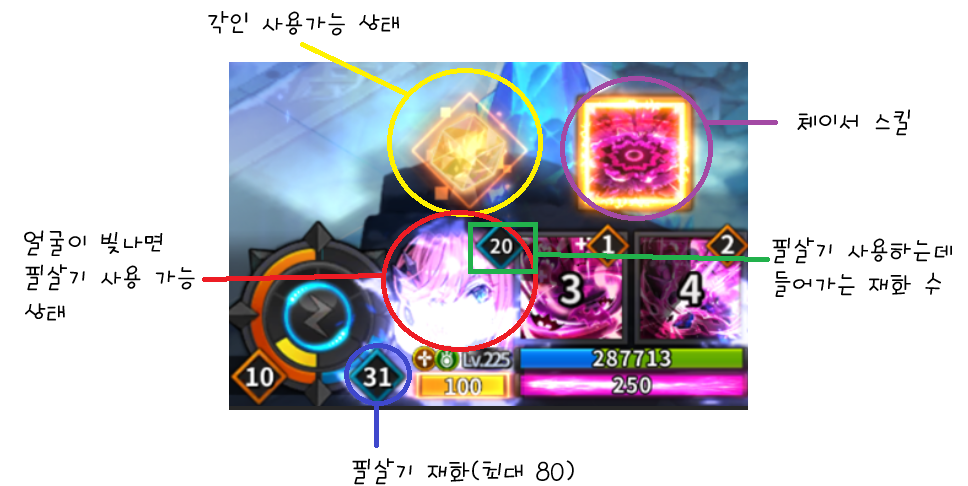 필살기에도 스킬별 효과가 있으니 잘 읽어보고 맞춰서 사용하면 좋습니다. (전투중에 캐릭터 두상을 꾹- 누르면 나옵니다)