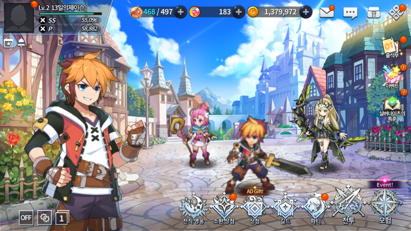 모험을 어느정도 진행하다 보면 캐릭터를 지급해줍니다.