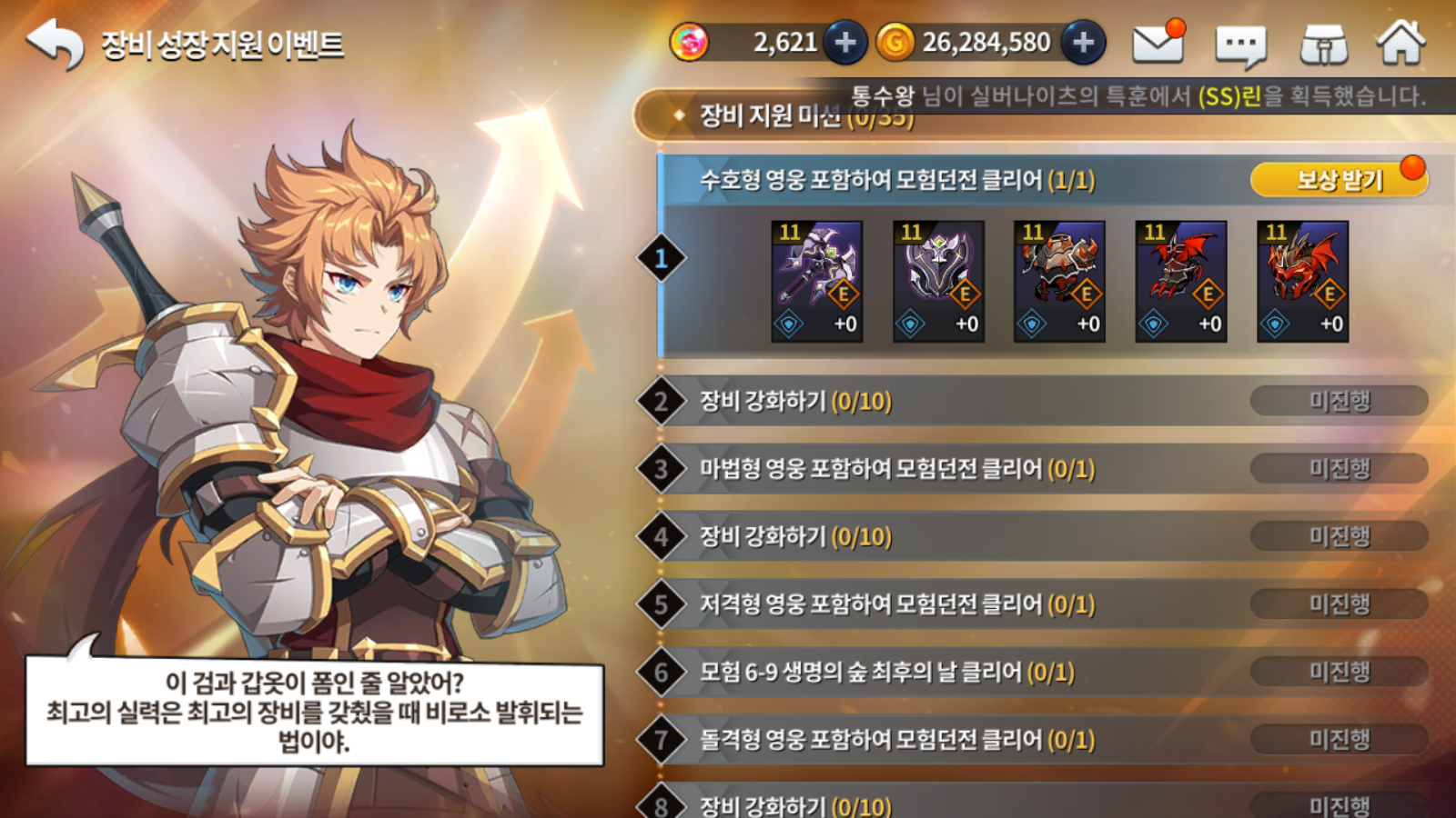 모험을 어느정도 진행하다보면 [실버나이츠 특훈] 이 시작됩니다.