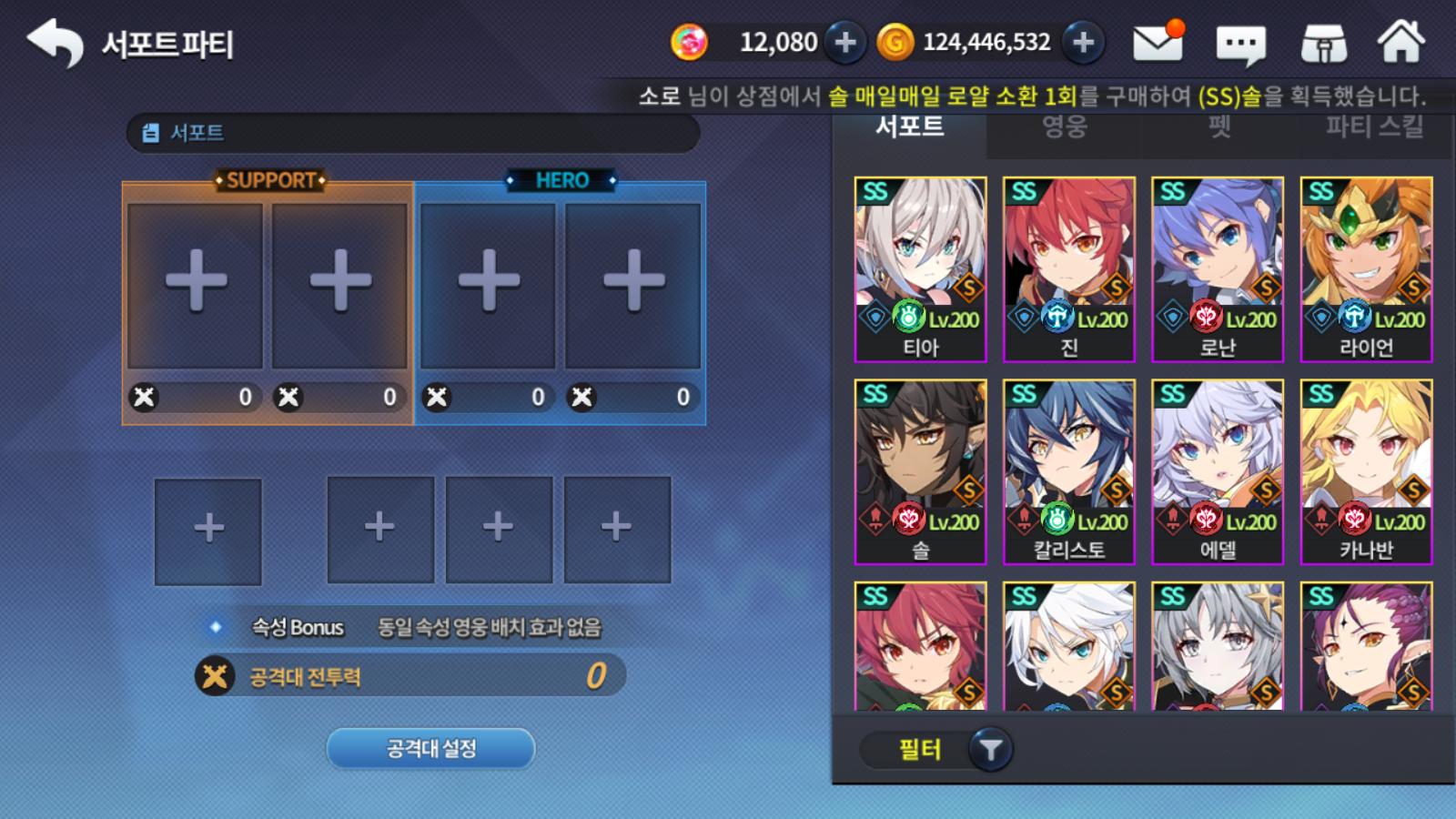 그래서 집결로 캐릭터를 모우거나, 직접 ss 캐릭터 선택권에서 캐릭터를 얻어야 해요.