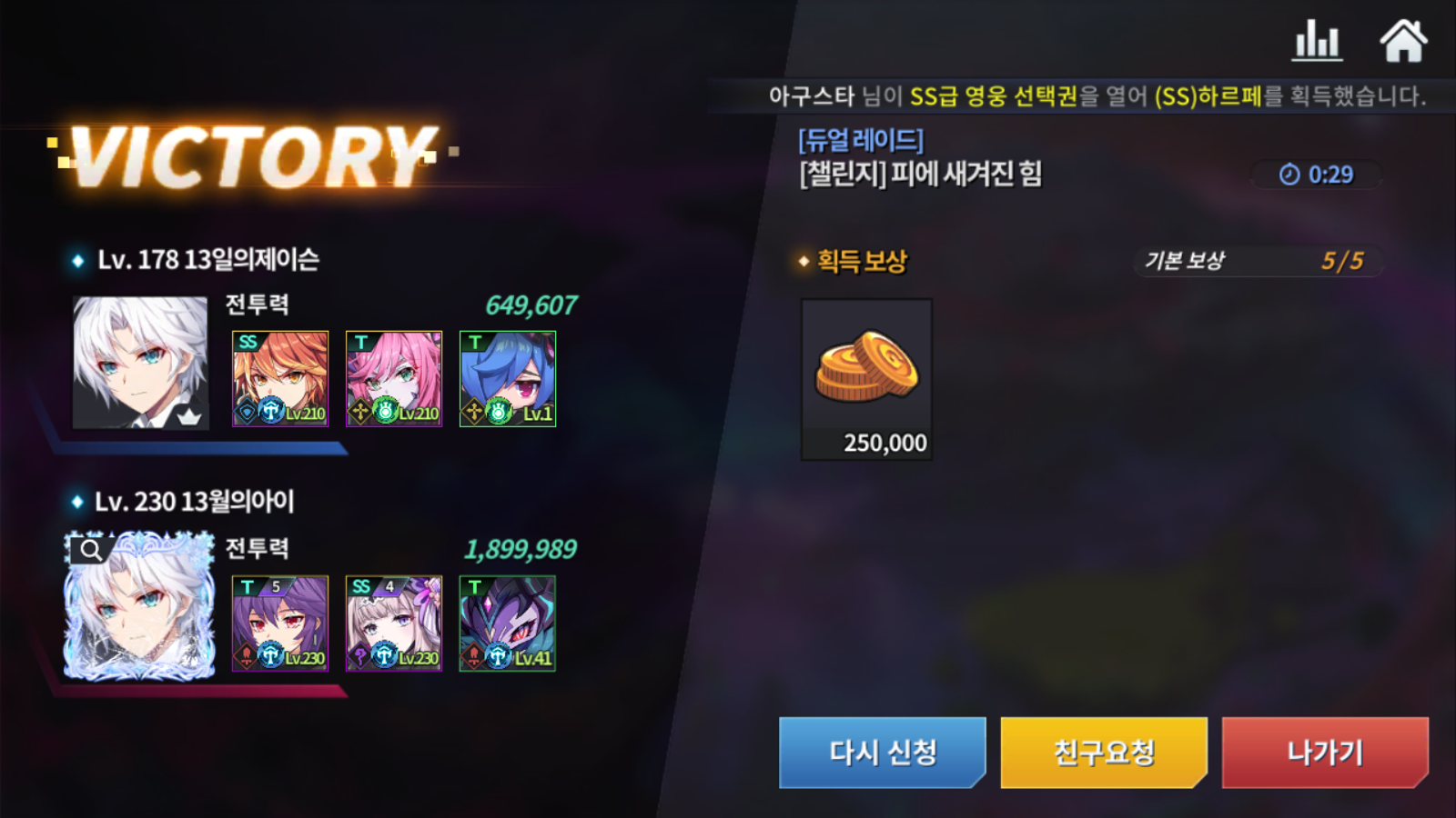 하지만 [티레이 티라임(진) + 서포트 파티]를 사용해서 빠르게 클리어를 하는 꼼수를 사용해서 일어난 일이기도 합니다.