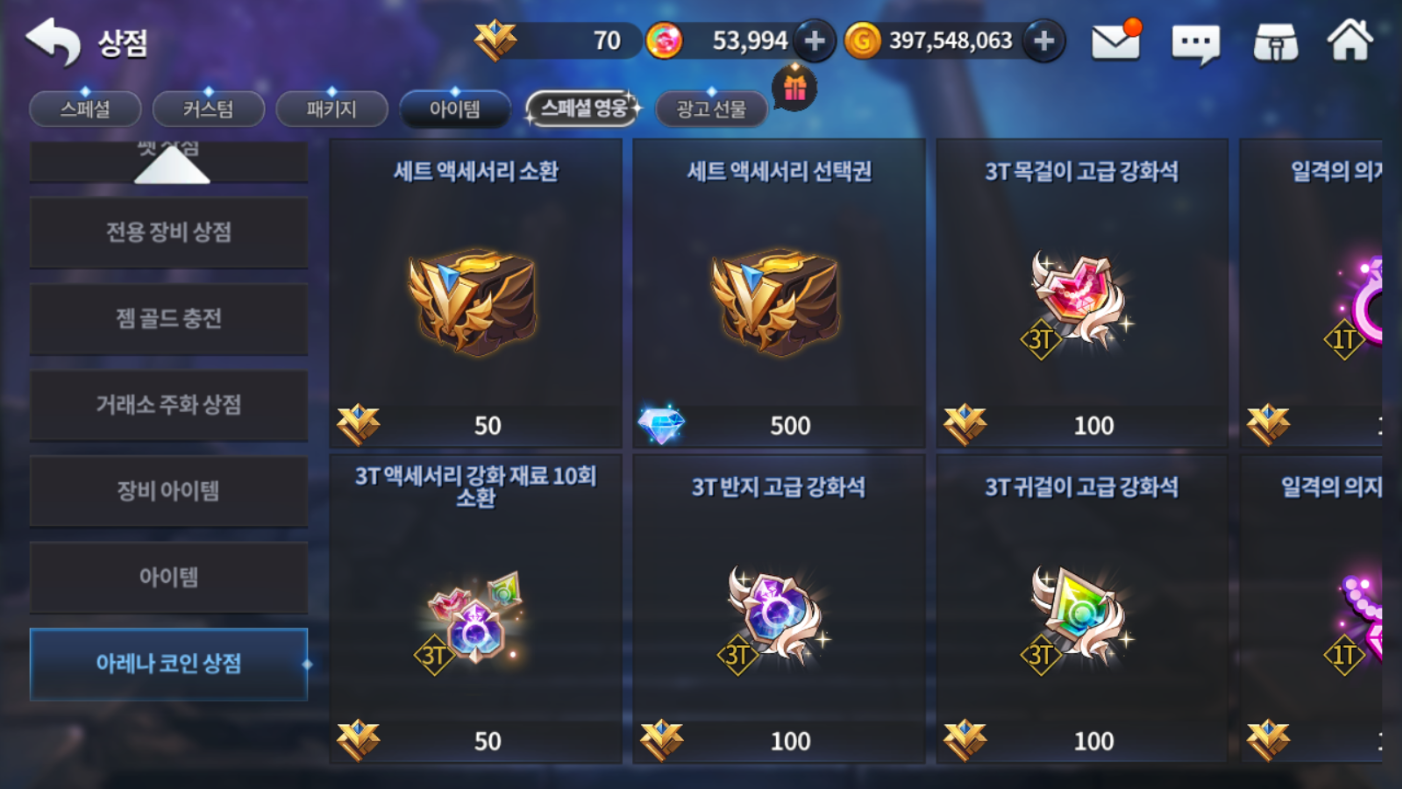 스페셜(s) 등급 / T등급/ SS등급 / S 등급 / A 등급