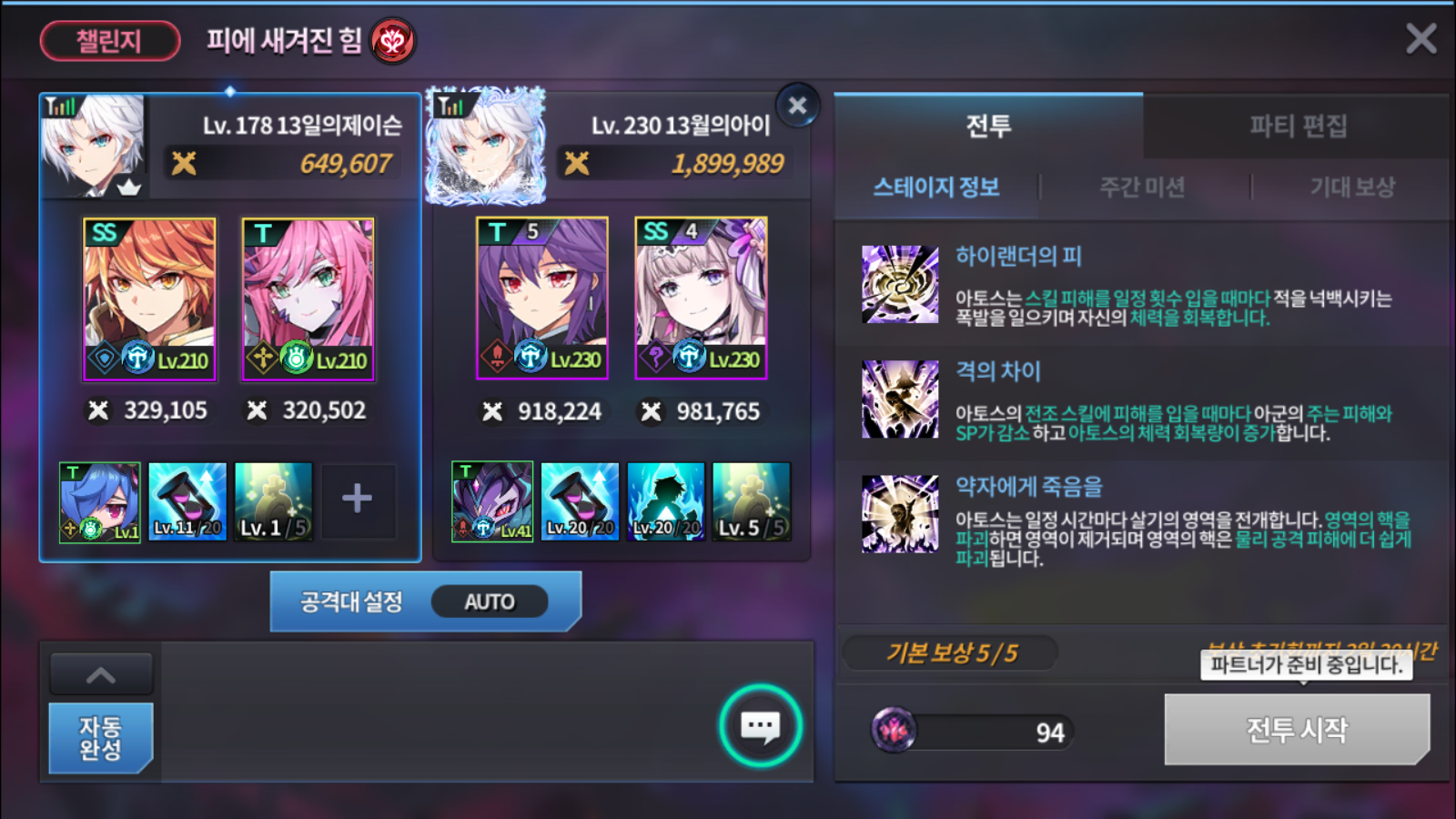 만약 집결 미션 진행이 막히거나 불가능 한 경우에는, 위에 있던 "내실 다지기"를 통해서 어느정도 공격력 강화를 해야해요.