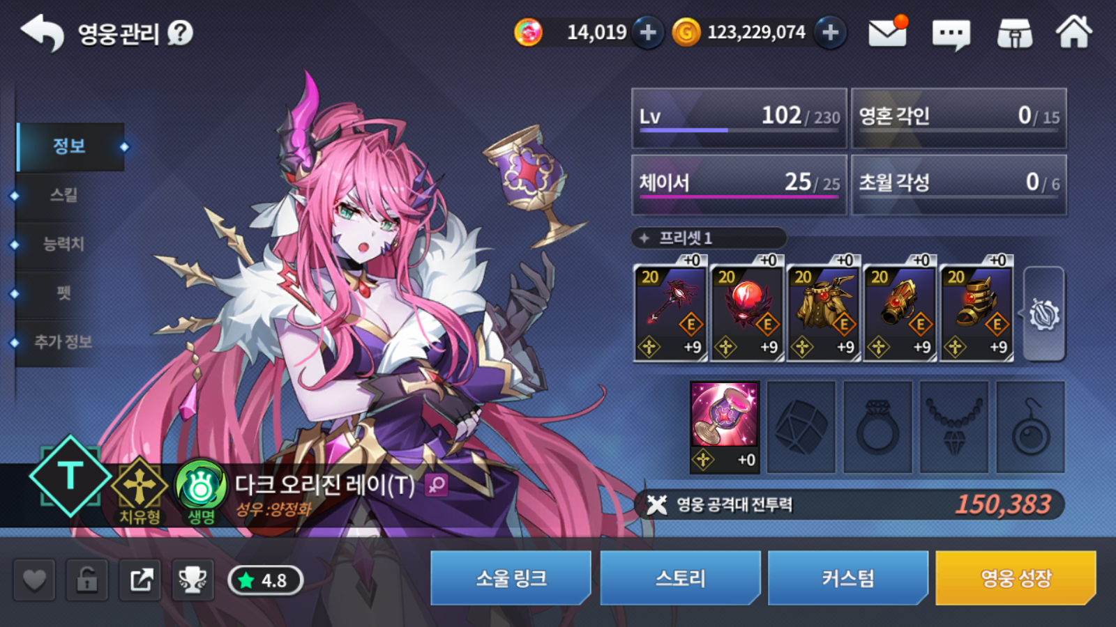 위에서 폭풍성장으로 [ 라스 | 루퍼스 | 브람마쉘 | 라피스 ] 를 25체이서 15영혼각인까지 키웠다면