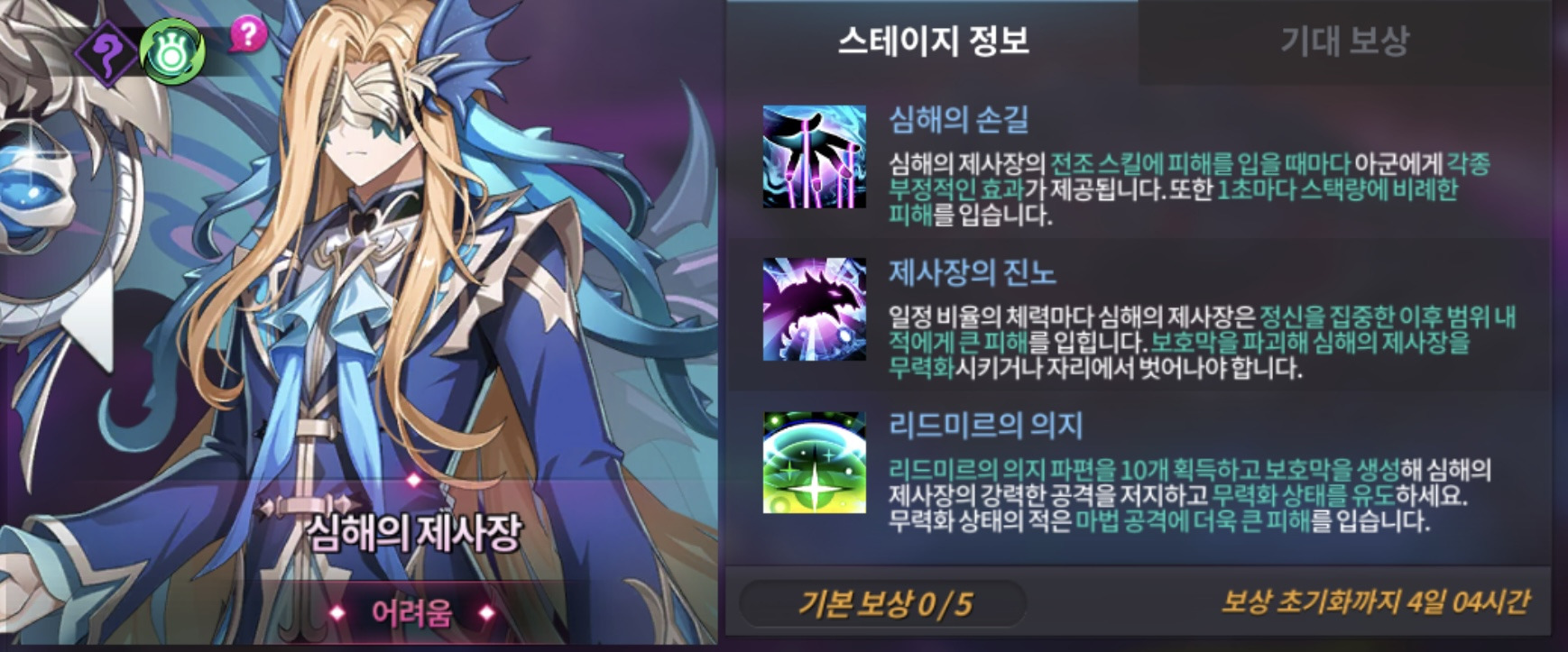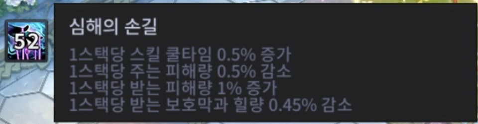 전조 스킬 피격시 [심해의 손길] 디버프가 누적됩니다.