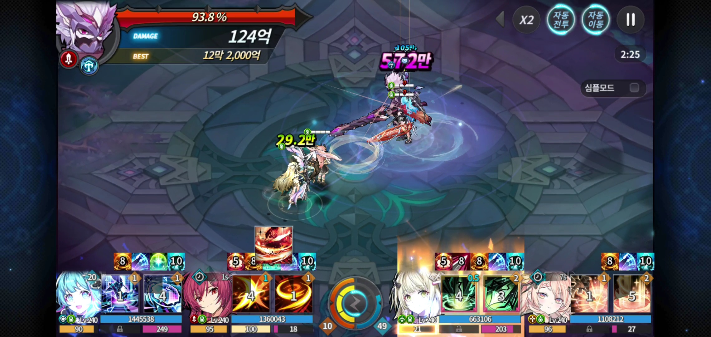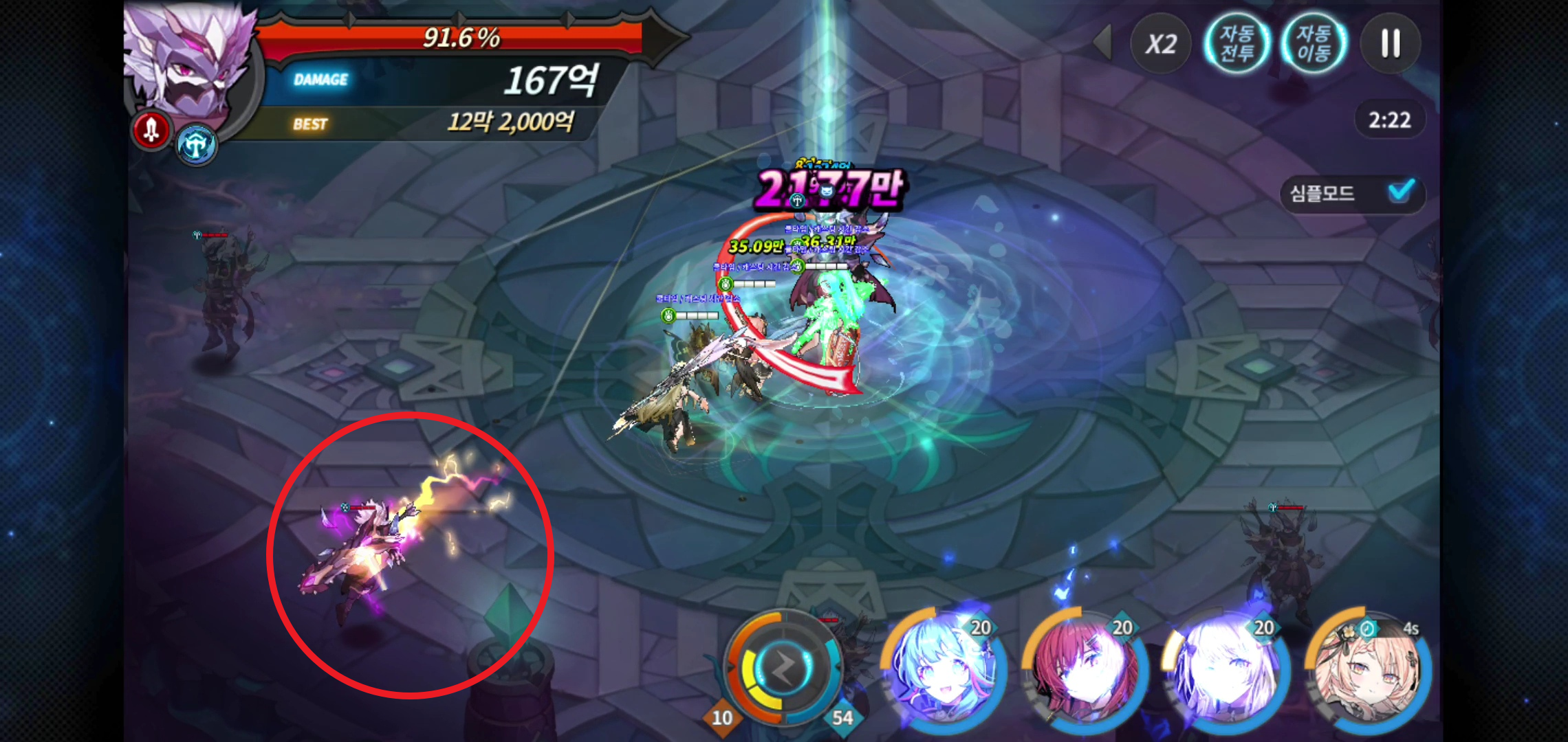 끝성 중첩이 끝났다면 다시 대사촉진을 자동으로 돌려놓으면 듀엘이 가운데로 와서 분신으로 흩어집니다.