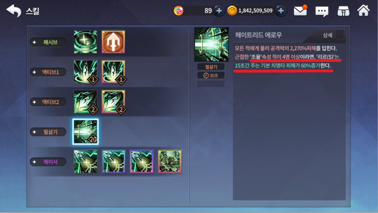 주연 효과는 최대한 물리피해 랑 쿨감을 챙겨주시면 되겠습니다.