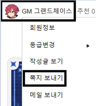 - [이벤트명 / 게임 닉네임 / 게임 회원번호]를 GM 그랜드체이스에게 쪽지로 알려주세요!